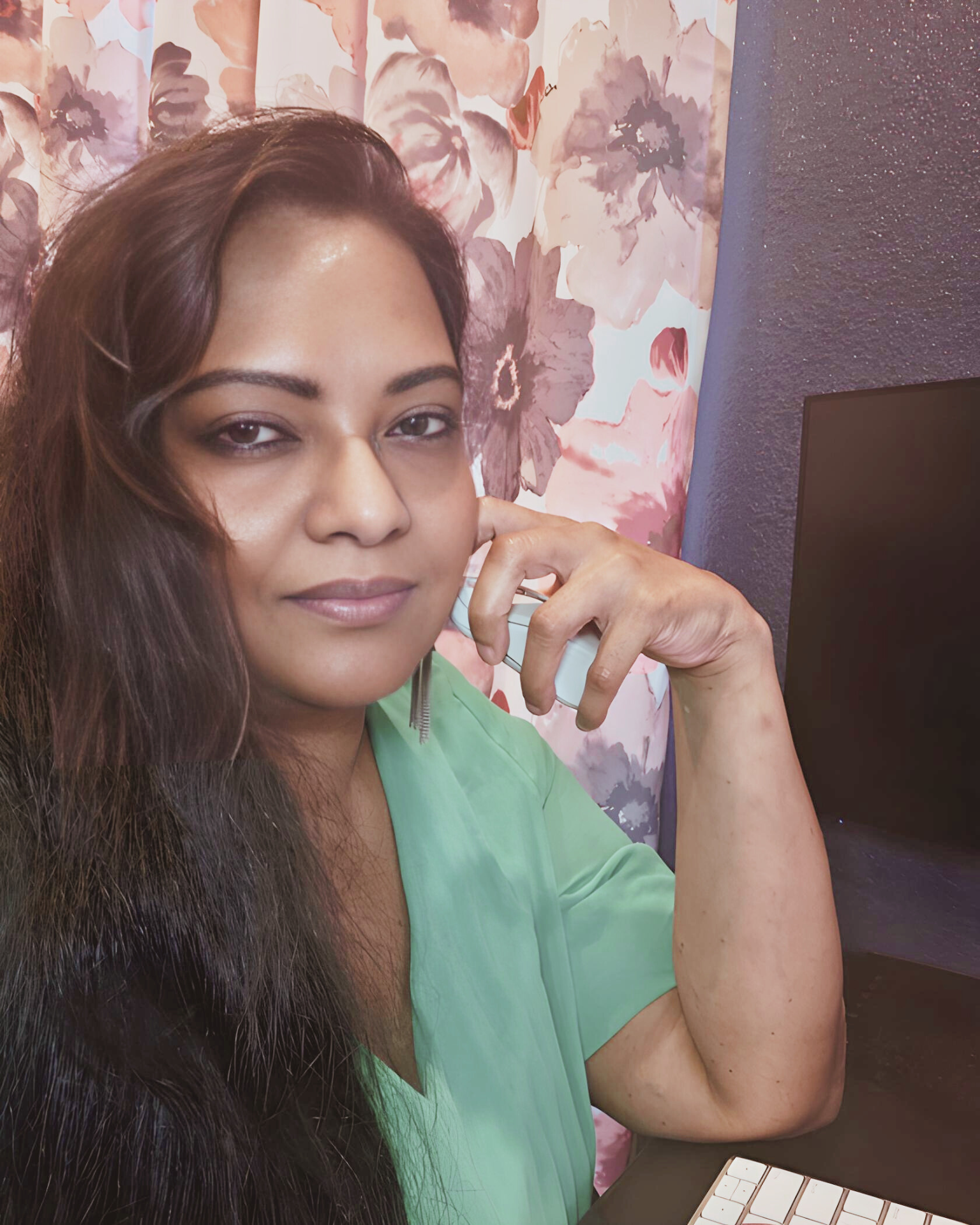 My hard work and dedication shine through as I diligently work from home, my hand expertly navigating the computer mouse.